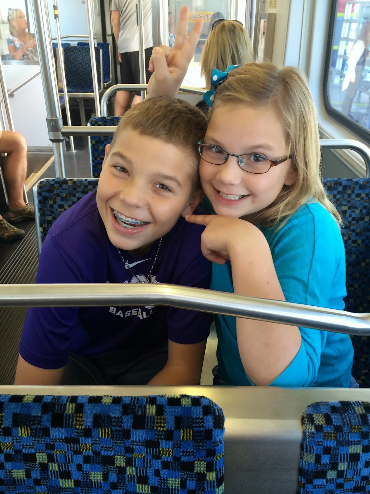 fun. We took the green rail straight to the gates but not without a little sibling silliness. I love when these two get along like this!