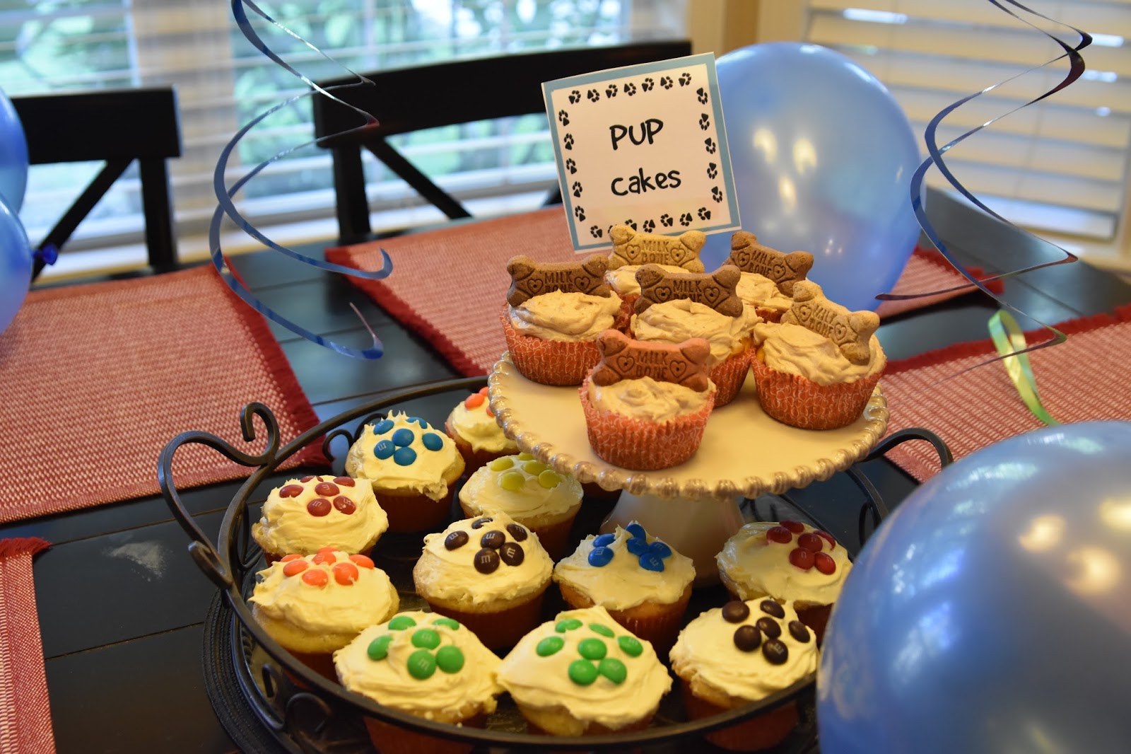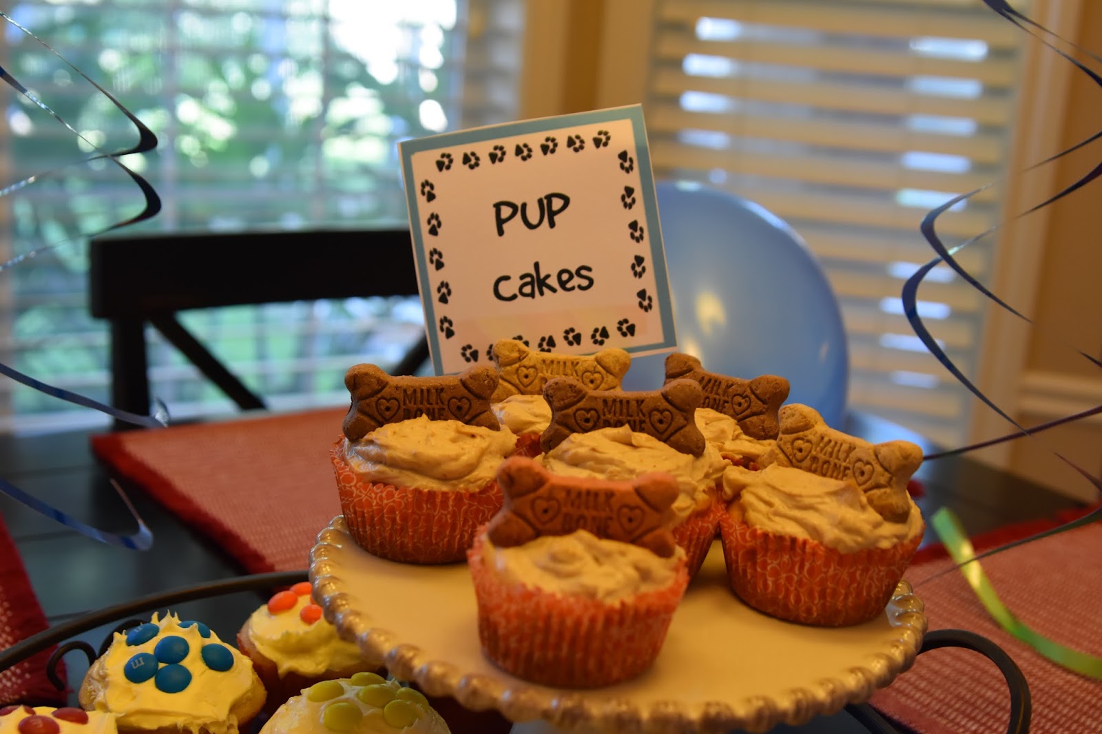 Of course no party is complete without dessert so of course we had some Pup-cakes for the doggie guest and a few regular cupcakes for their people. The m&m’s were suppose to look like paw prints but I think I should have stuck with the oreo milk dud combo like these here.