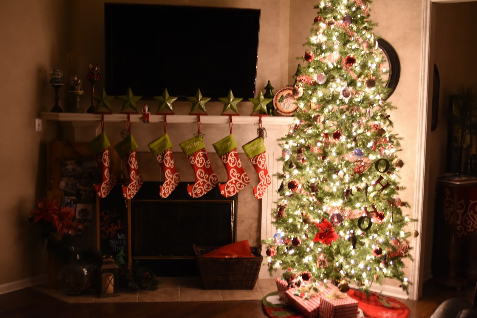 4. Your stockings are absolutely gorgeous! I think that's my favorite part of the whole tour! And I also love your pillows on your bed!! Those are just darling. I think next year I might add a few more things to our bedroom.