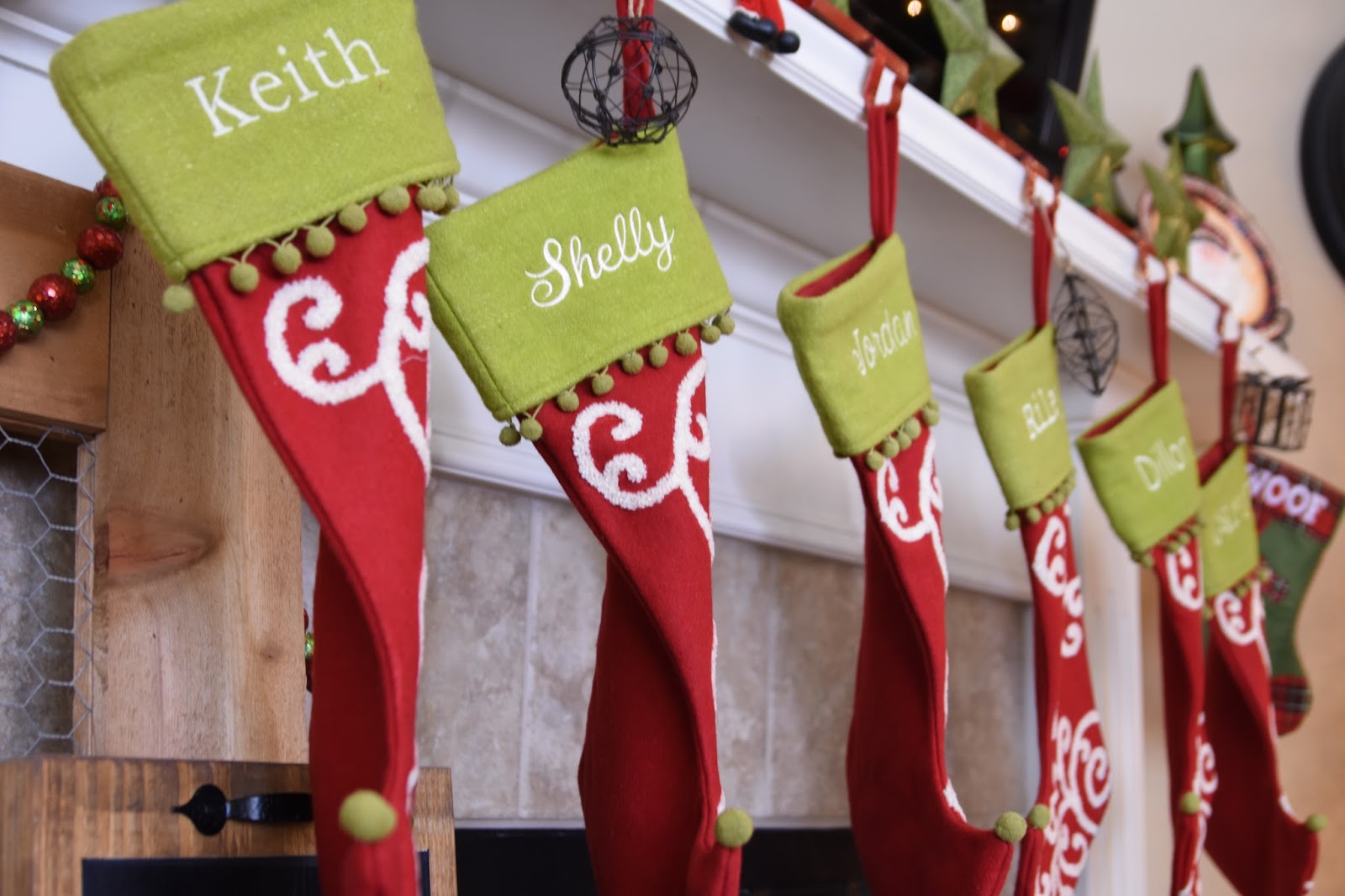 These stockings are the main reason I will have a hard time ever moving away from traditional red and green decor.  I love them so much!  Back when Southern Living was around I grabbed these and then had them all monogrammed in a slightly different font.  I adore them!