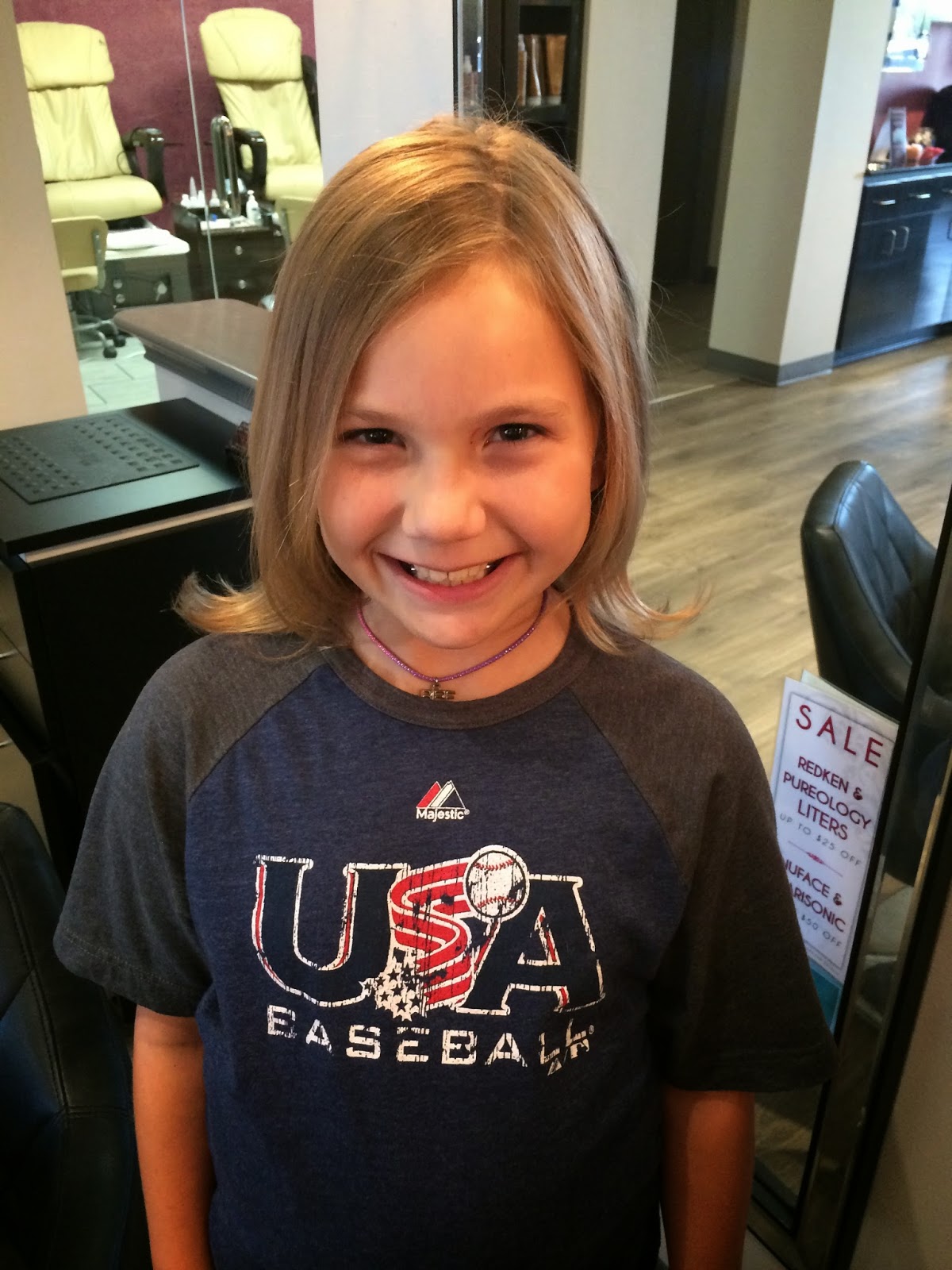 I actually took two different cars to the dealership for oil changes before taking Miss Carly for a much needed haircut! Sweet girl has her moms unruly fine hair with just enough curl to make a mess but not enough to wear curly. She was a happy camper after getting a few inches taken off.