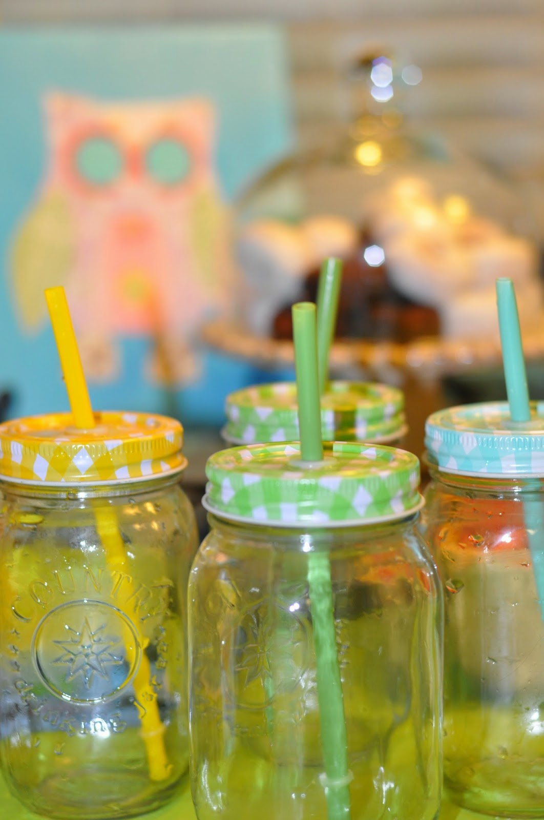 I looked around Pinterest as well for “Owl Parties” and found some cute wording to use on my memo board. I added some flowers from HEB and a tablecloth from Hobby Lobby and that was pretty much the extent of the decorations.