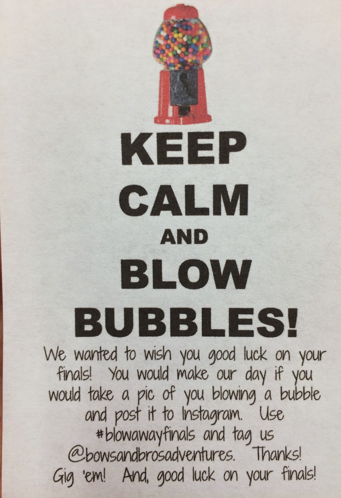 After a big power nap I met up with my friend Holly for a #lightemup act of kindness. If you are looking for ways to let your light shine this holiday season, visit Courtney Defeo’s Blog for some great ideas. I really just can’t explain how much joy you can feel from giving back to others. The blessing always comes back to me ten fold to see the unexpected happiness on someone else’s face. We traveled to the A&M campus and hit the 3rd floor of the Evans Library to pass out bubble gum to students studying for finals. The girls especially get into this as they hand each a card and 2 pieces of gum while encouraging the students to Blow Away Finals. So simple and so much fun to see the smiles on these students faces!