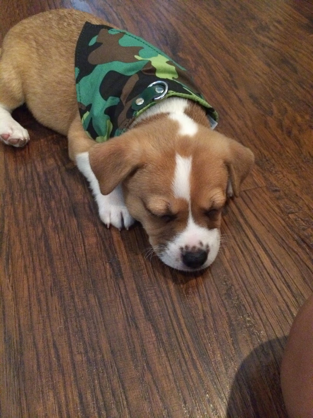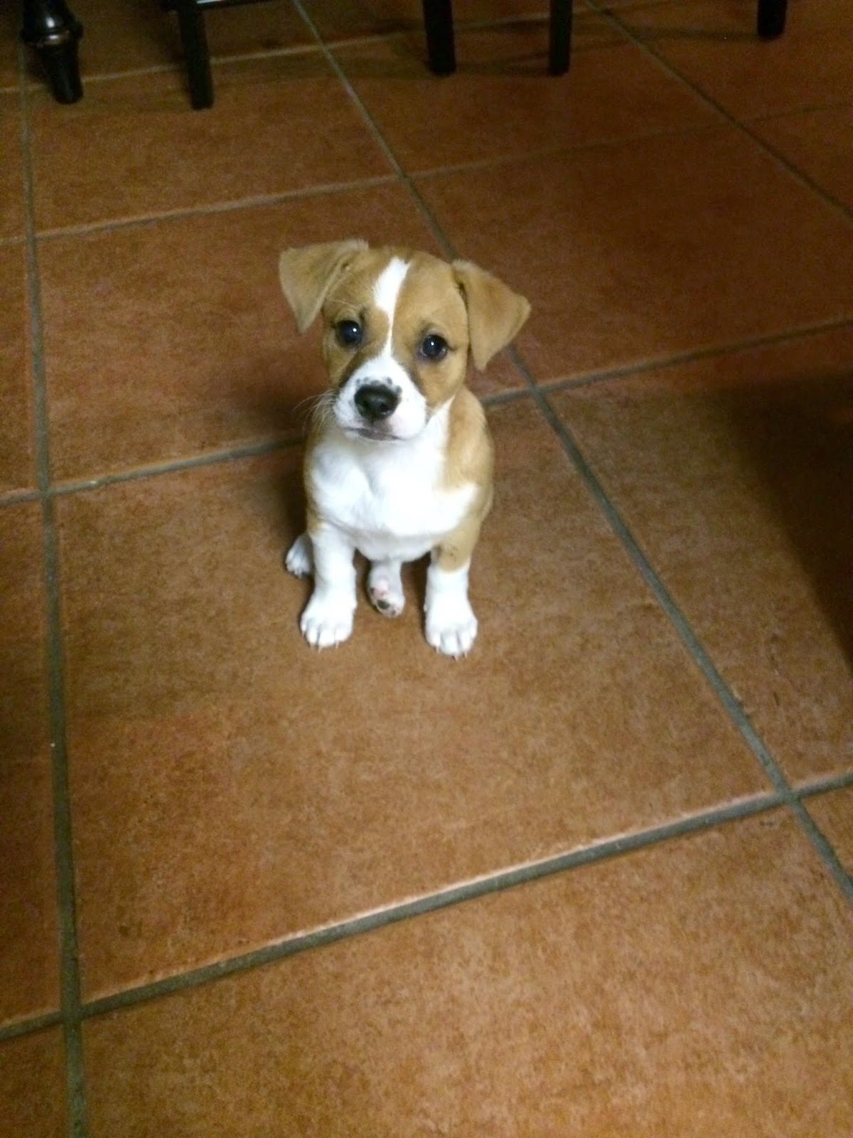 These two kept pushing me and finally I caved when a friend of a friend was looking for a home for 4 little pups. No way was I interested in a male dog for sure but then we walked in and this little pudgy dog came bounding out of the pen with the cutest little freckled nose and not a care in the world. He roamed around and was totally looking for trouble the entire time we played with the other three and we just kept going back to him. He was the one! Personality plus and so cute.