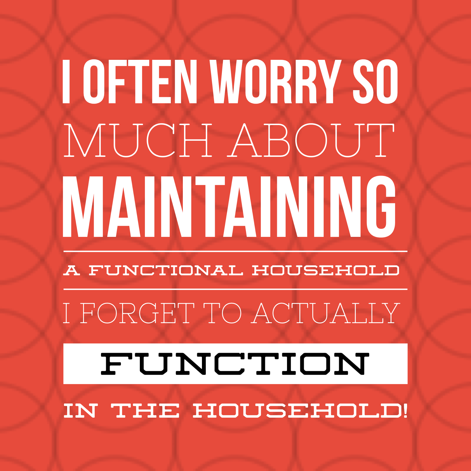 As a mom and a wife I think I often worry so much about maintaining a functional household I often forget to actually function in the household!  It’s obvious the kids do not see the mess! Do I really want the one thing they remember about me to be my constant frenzy over the mess?  I still suck at this so many days and still lose my stuff sometimes but as with all things I am a work in progress.