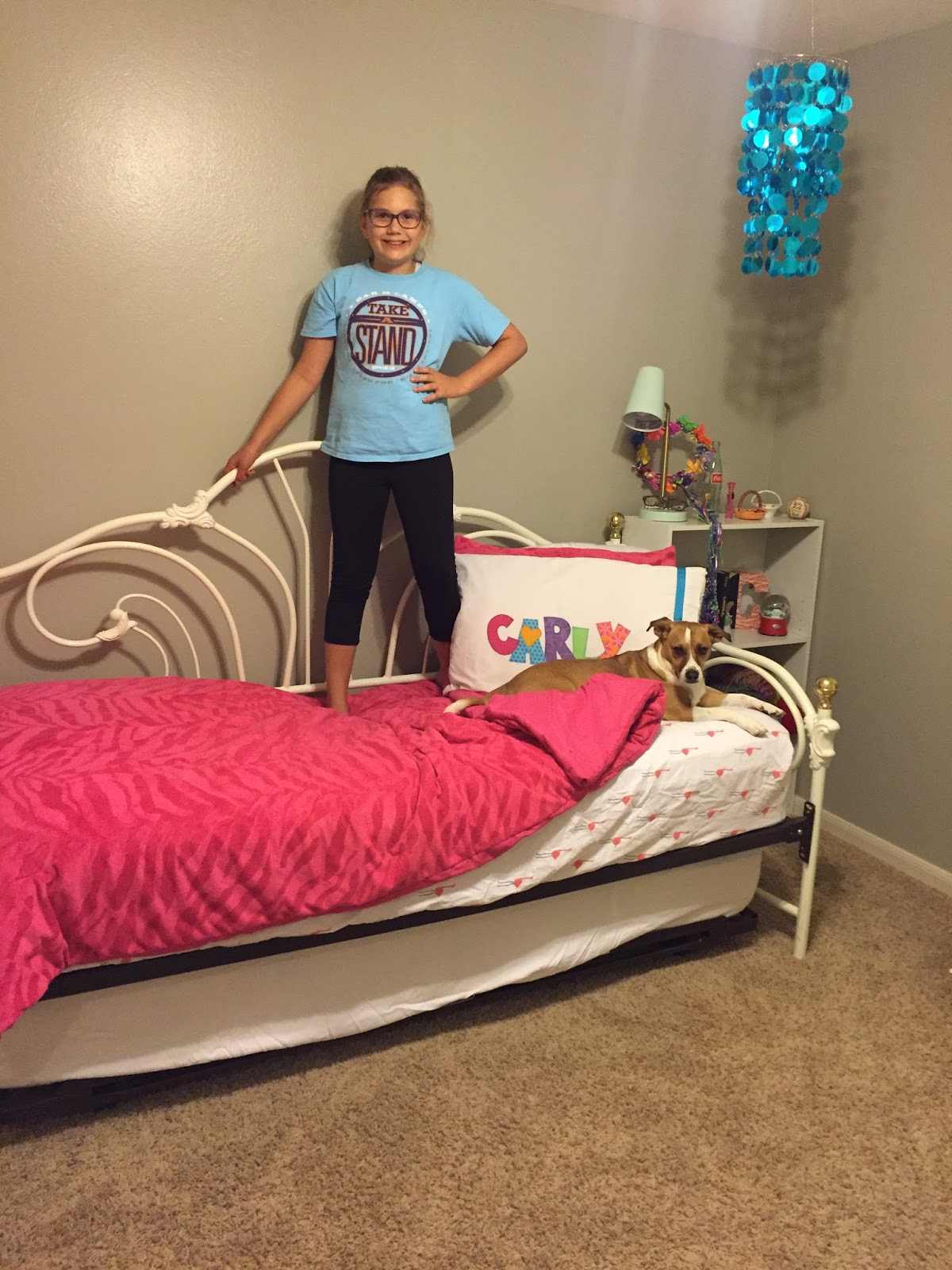 I finally finished painting Carly Jo’s room! I will do a full reveal soon when we have the new bedding and everything hung on the wall. The best, it’s no longer pink and my girl is happy!