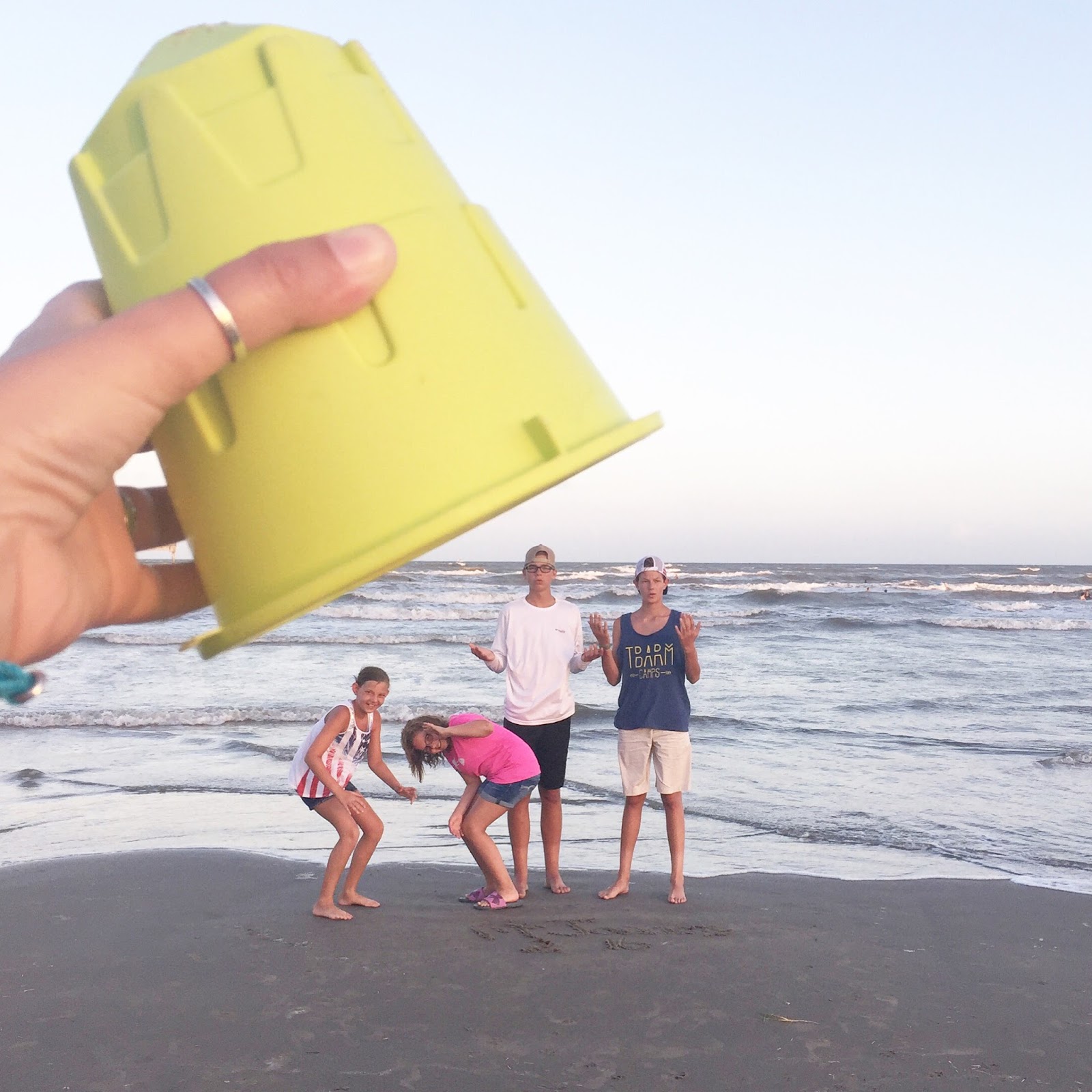 5. The trick is to put the "bacon" soda inside a water bottle and bury that and then pour the vinegar into the bottle. We tried first without the bottle and it was a flop. Riley is crazy….and he hates the beach anyway but he made sure to be pathetic and send me text about how he couldn't believe we went without him the entire weekend! haha