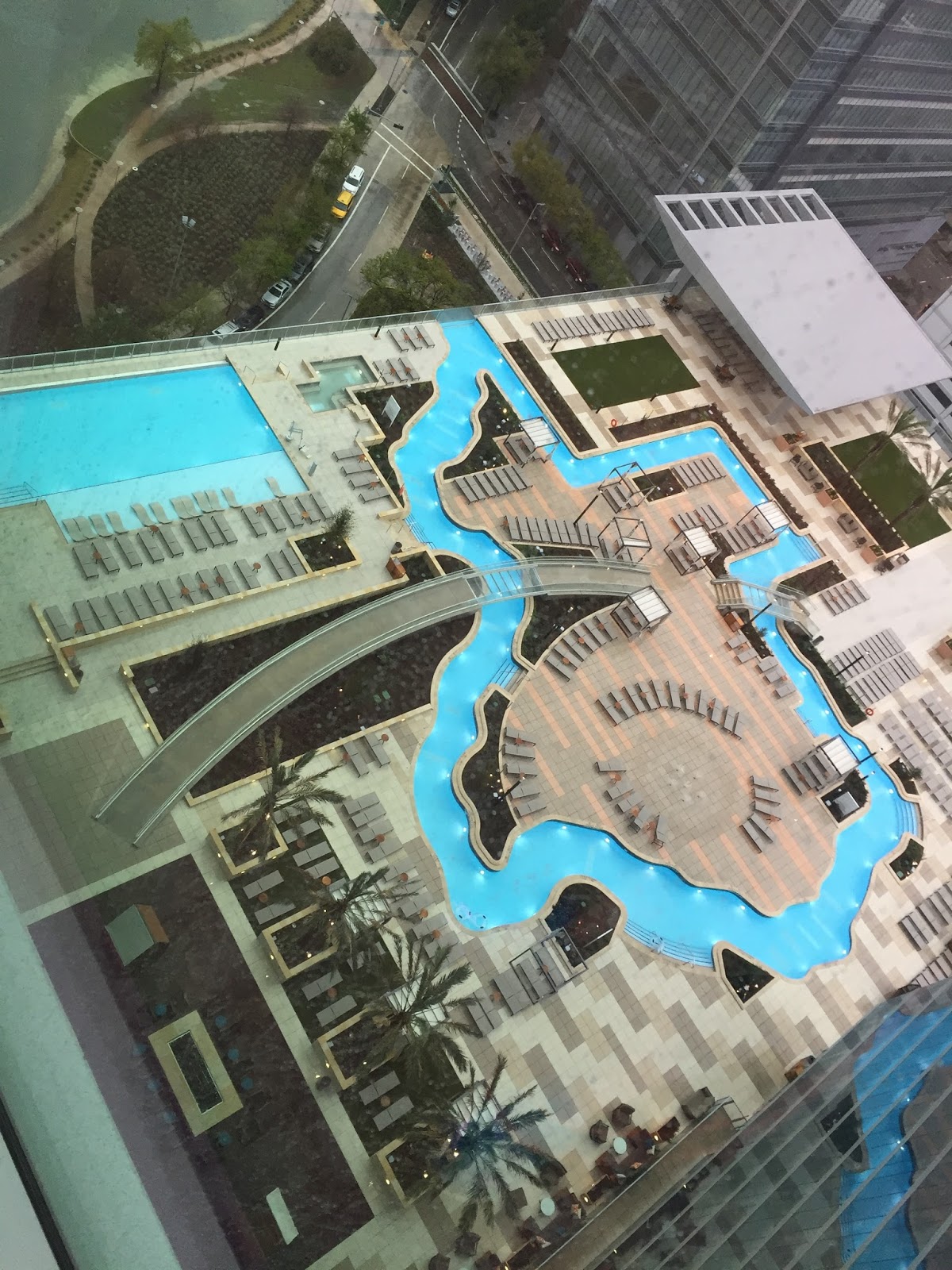 Marriott Marquis and after seeing the view of the pool from above I so want to head back this summer! The Texas is a lazy river!! So much fun.