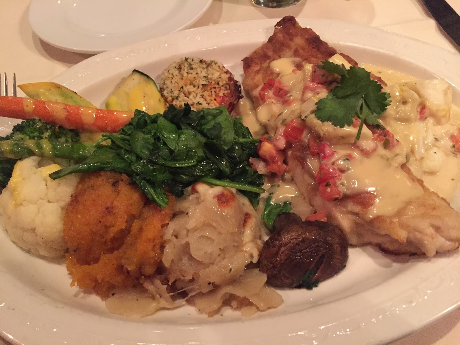 Christopher’s World Grille. The Zihuatenajo Snapper and all these veggies.