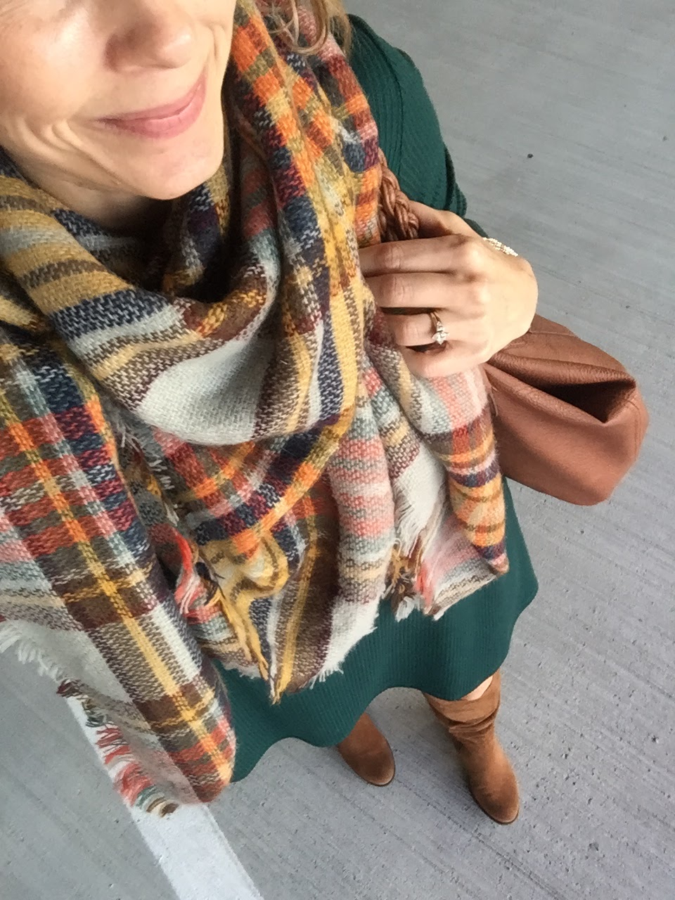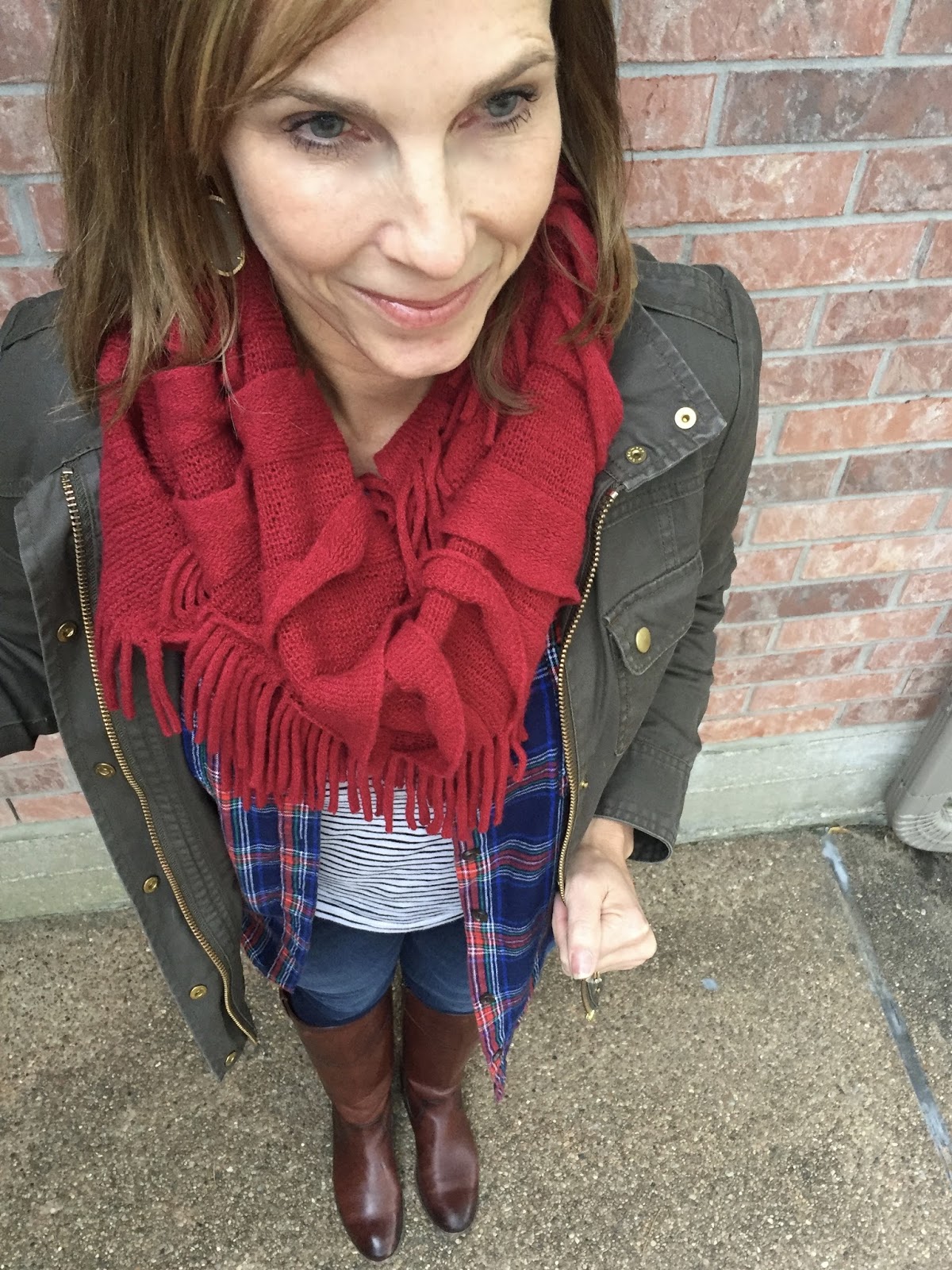 We finally had a week full of cool weather and I loved pulling lots of layers together.  This look popped up from last year on my Timehop so I modified slightly and added some stripes under my plaid.  Love the way it turned out!  This may actually be a contender for a Christmas day outfit depending on the weather.