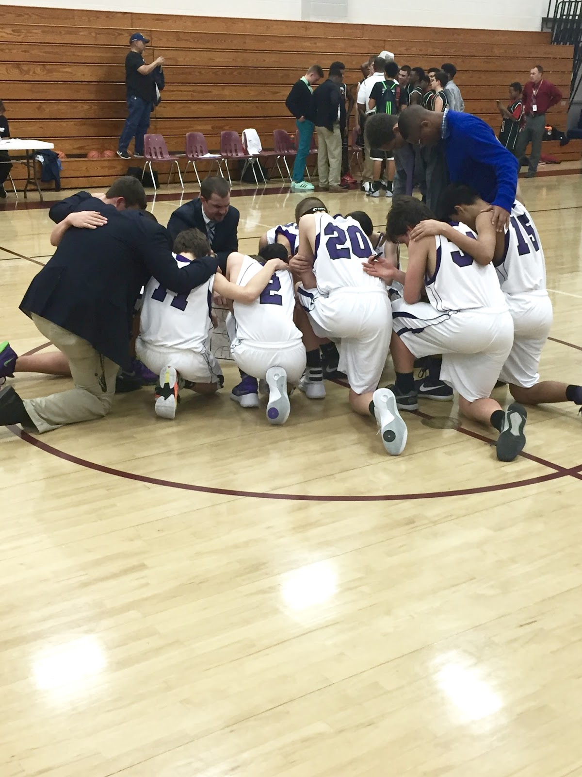 Dillon played his last basketball game on Thursday and I loved seeing this after the game! You may not always win but teams who pray together will be successful.
