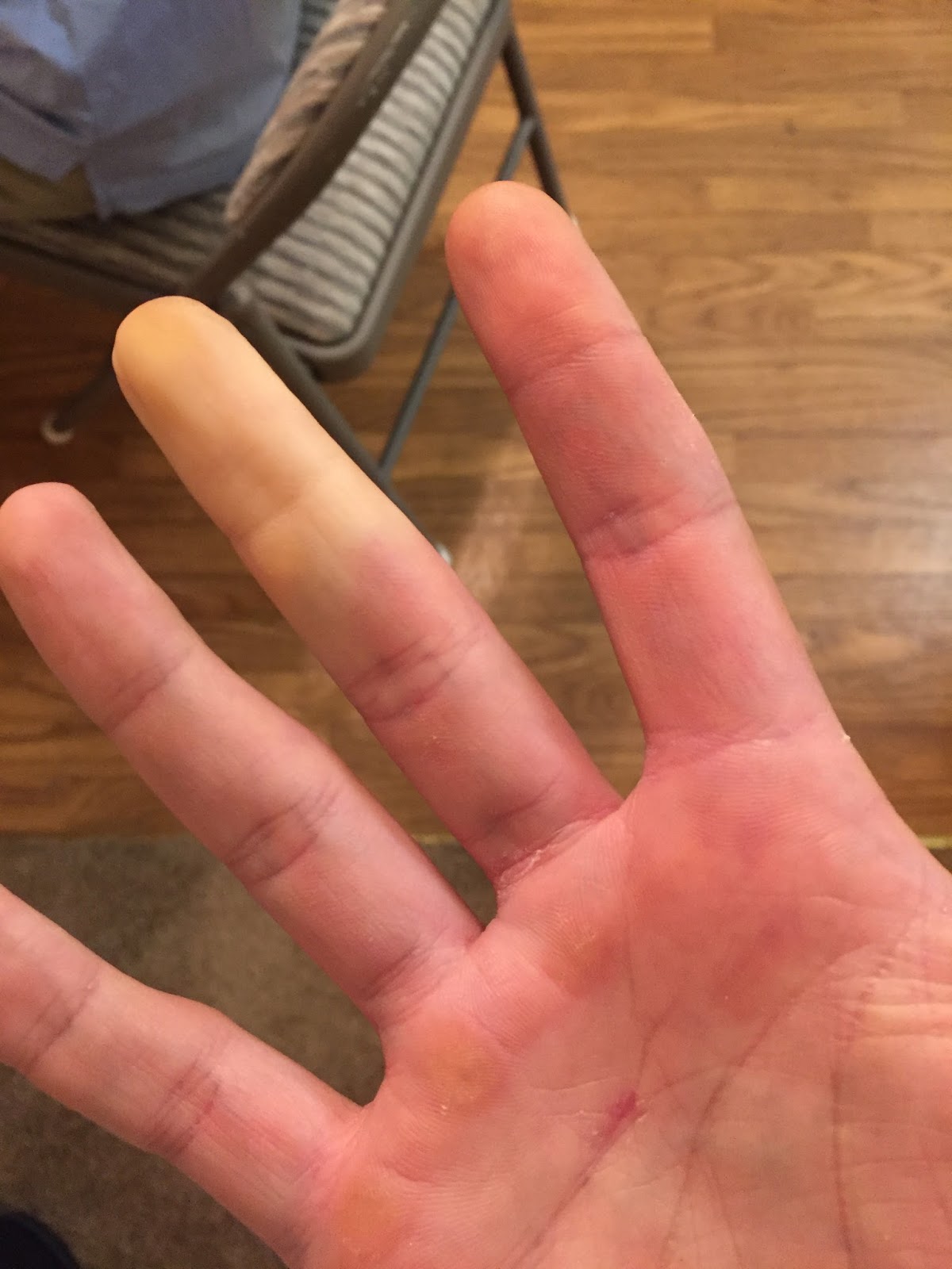 So in case you are wondering how in the world Riley knew something was wrong, here is a picture of his hand. He was having numbness in his fingers to begin with, then coldness and then as you can see discoloration. What we now know is this was being caused from tiny blood clots traveling down his arm and into his fingers. I’m so thankful Riley took this seriously and sought medical attention. The surgeon was so reassuring and I feel very grateful we were able to get in to see him so quickly.