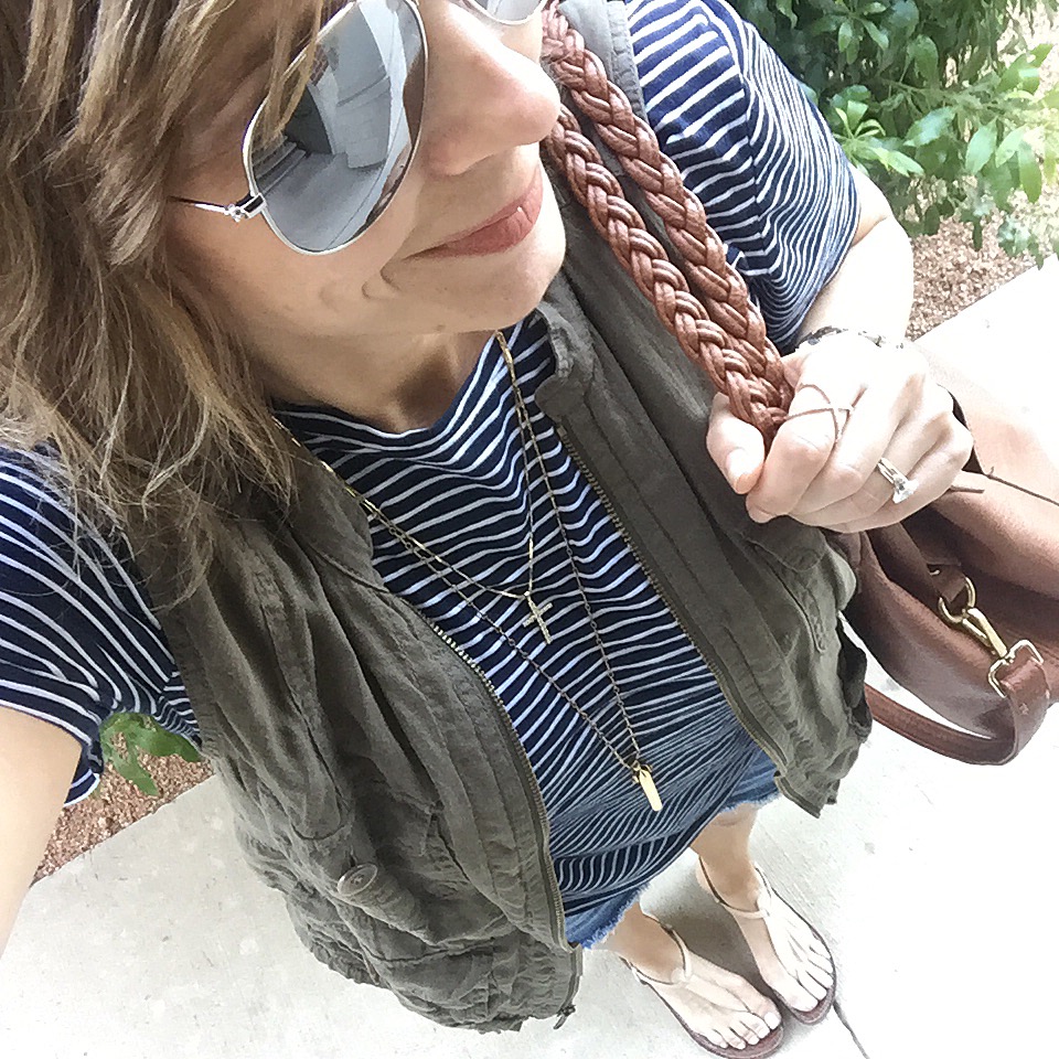 I was thrilled to finally be dressed and headed back to see the rest of my babies. How have I never thought to add this vest with a plain striped shirt and cutoffs?!! I will be wearing this alot!