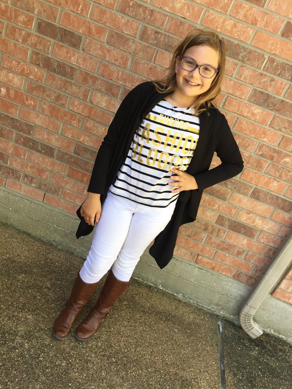 She pulled this together all on her own! Guess she’s not afraid of mixing black and brown OR wearing white after labor day! Love her!