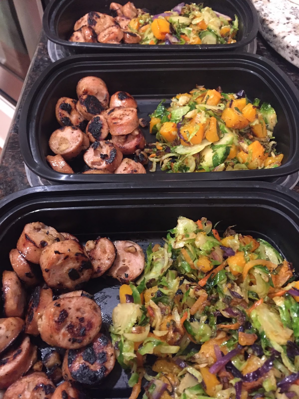 I grabbed a butternut squash and brussel sprout salad and sauteed in a little olive oil. I divided along with some chicken sausage to meal prep my lunches this week. My weight has always gone up and down but typically only within a 10 pound range. Well, friends, I have exceeded the upper end and have got to stop the madness before I’m down to zero clothes to wear!! I finally have been back at the gym consistently but it’s really time to stop allowing myself that extra glass of wine and all the sugar! It’s tough but I know if I focus I can be back into all my pants soon!