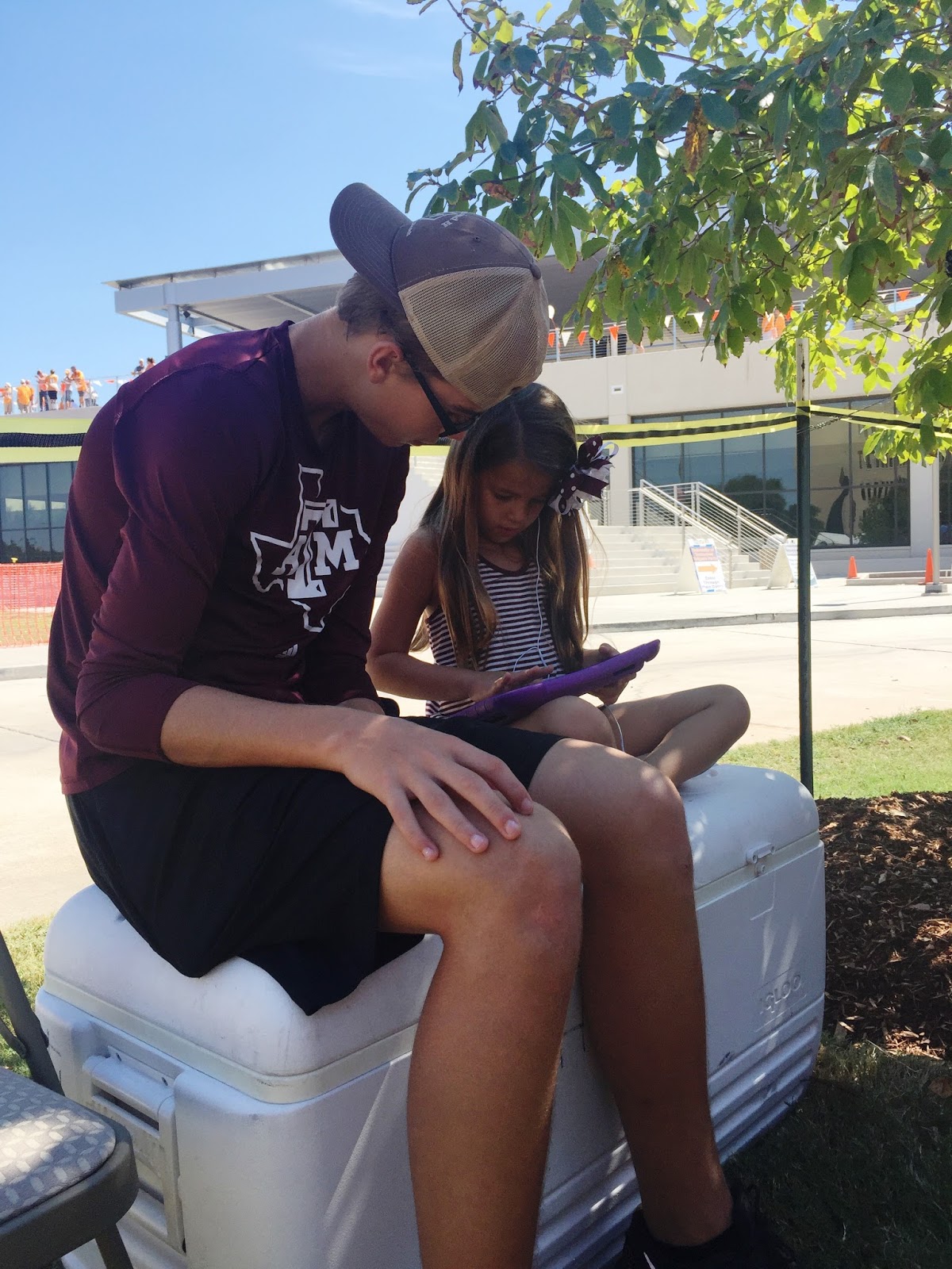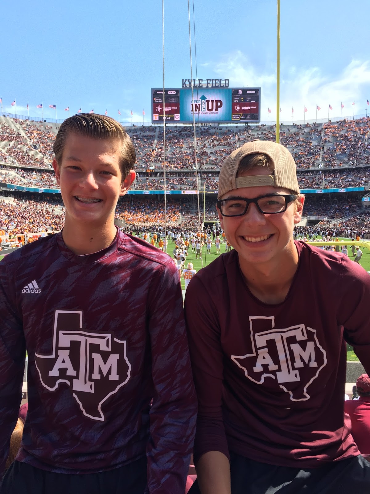 We were all smiles to start the game! We had zero clue we were going to end up sitting there for 5 hours!! Thankfully the Ags did finally pull out the win!