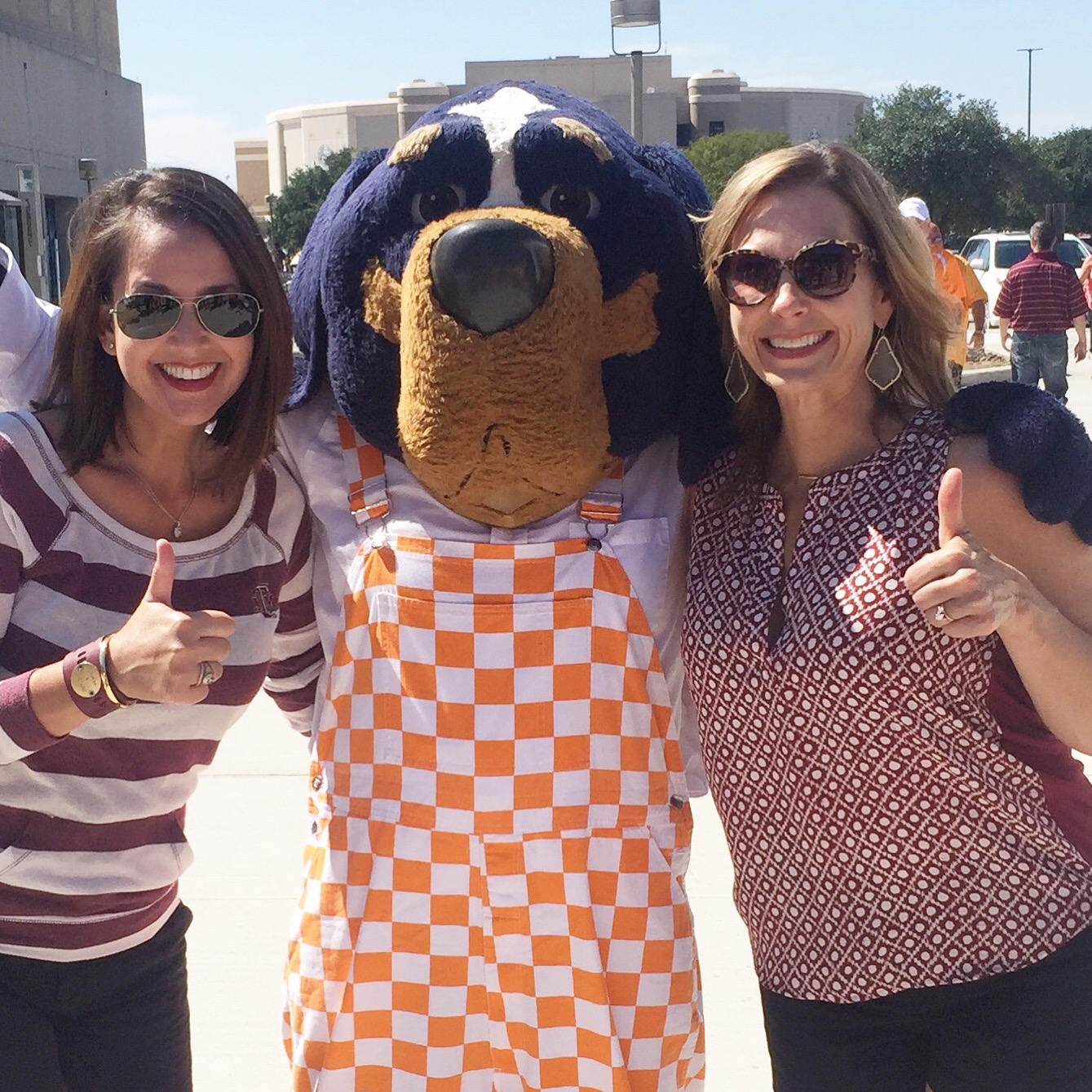 Holly and I ran into Old Smokey while we were tailgating. Truth be told, we grabbed our girls to head over and take a picture only to turn around and realize they had left us! We decided we would have our own picture taken!