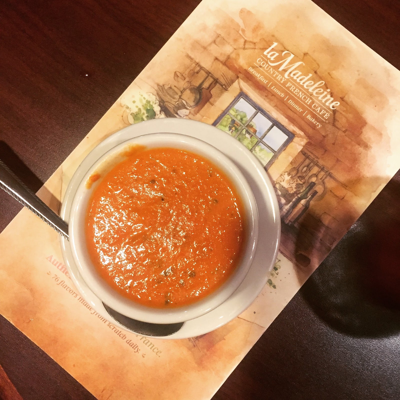 Tuesday morning I headed to pick up my Mamaw. She has an autoimmune disease, myasthenia gravis, and has to see a neurologist once a year. We were way over due so I took this opportunity spend the day with her. We headed to la Madeline for lunch and after seeing Emily’s tomato soup recipe that morning I knew this was my choice!