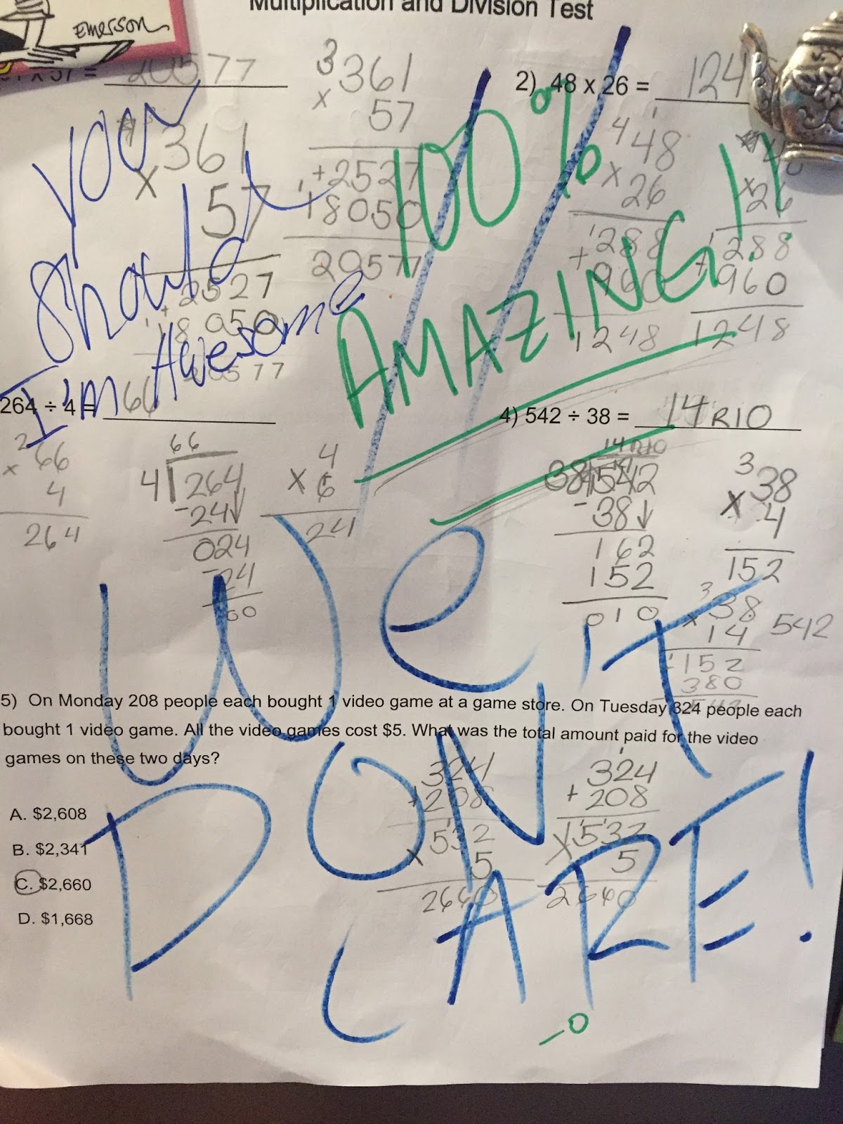 Let me just say, Carly Jo has the best attitude when it comes to being the baby sister with two brothers who can sometimes be buttheads. One more than the other! We can always tell Riley’s home for sure. She had this test hanging on the fridge for weeks so proud of herself. When I saw what he wrote I was so made at him!! Then I realize she took it all in stride and totally responded to him with a positive attitude. Love her to pieces! Hope she never loses her confidence in herself.