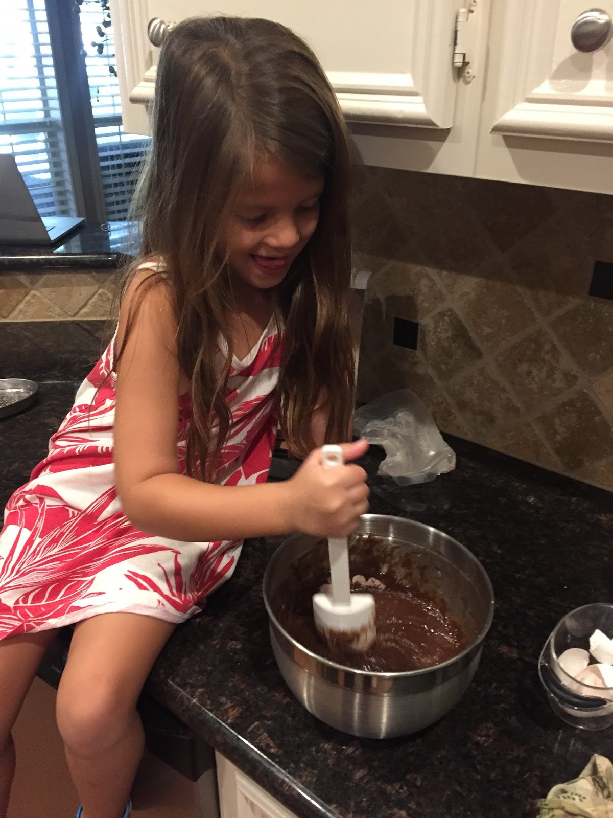 Saturday night Holly’s girls came to stay with us while they had some time with Colby. This girl helped me mix up some brownies!