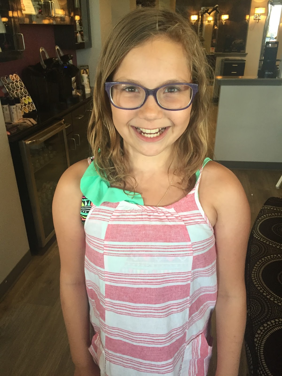 We headed for a much needed hair cut on Wednesday and I grabbed this before shot. Sadly I have no after shot because she was suppose to be headed for a swim party so we skipped the blow dry.