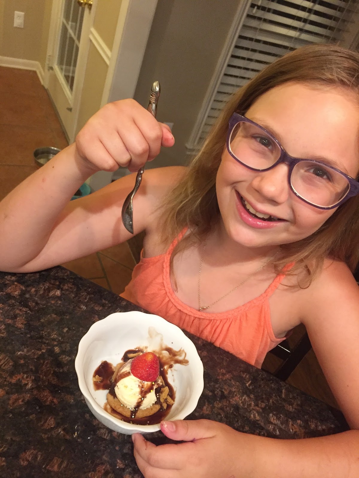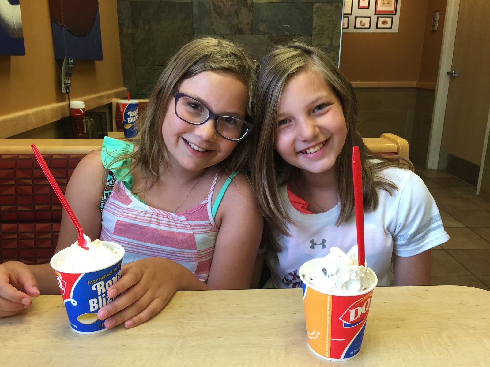 When the girls made it to the pool everyone was out of the pool…because..umm…vomit in the pool. Ewwww….not staying for that. So Holly treated the girls to blizzards instead! No complaints.