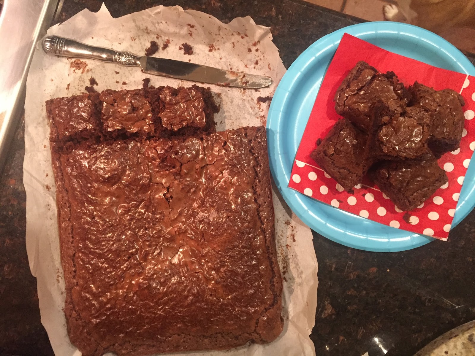 On Wednesday night I decided to bake up some brownies and create some little surprises for a couple of friends. One of Carly’s friends has so generously offered to take her to camp each day so they definitely deserved a treat. I bought the Duncan Hines Fudge Brownies because they were cheaper and made two batches in one pan which made them so thick and perfectly soft. I lined my pan with parchment paper so they were super easy to lift out with no messy cleanup.