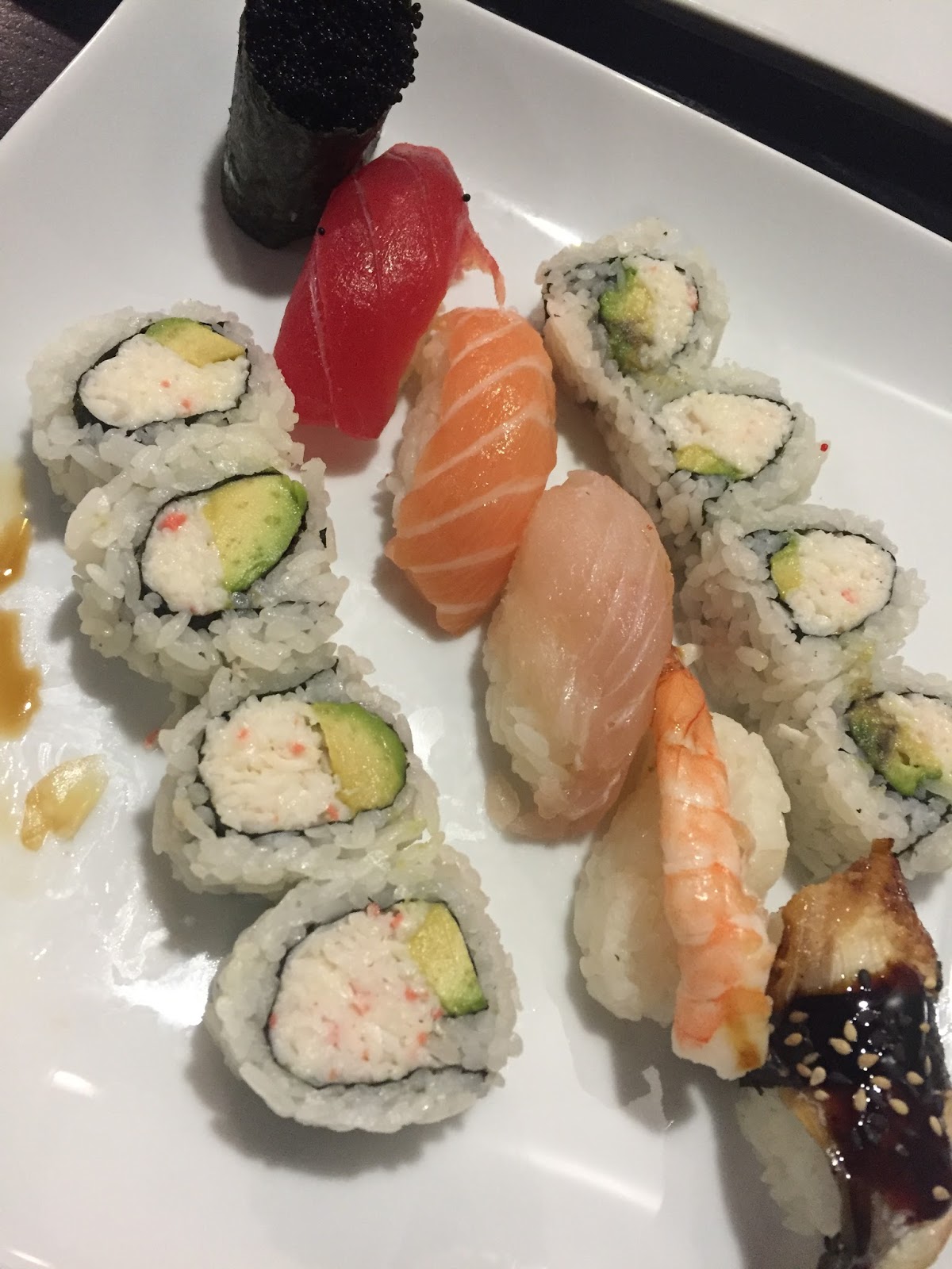 We dined on sushi which I have been so longing for. I had to get the California roll for Carly and that is not my fave but it was still yummy.