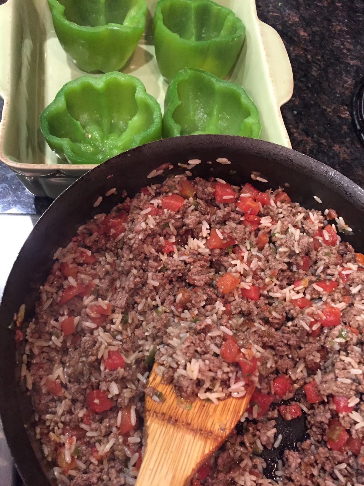 I cooked 3 meals this week! So proud. I actually have made stuffed peppers many times and often I do it differently every time. This night I pulled out my Better Homes & Gardens cookbook that I received as a gift at my first wedding in 1992!! Nothing but good old homecookin in that baby.