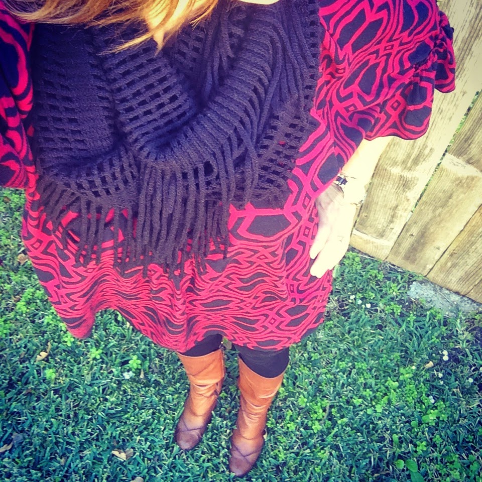 If I could get away with it I might just wear leggings, boots, tunic and scarf 7 days a week from November to April! I love this look. I feel pulled together but also so comfortable. My tunic is from a local boutique and is Escapada. I have several pieces from this designer and they hold up well, come in fun patterns and are reasonably priced. Tres Chic Boutique and Witts End Boutique are two local boutiques that carry this line. I also know so many people love Hue leggings and I will echo they are super. Sometimes I just need a little extra support for the muffin top and smoothing especially if I’m wearing a more fitted tunic. I found Lysse leggings last year and I love them!