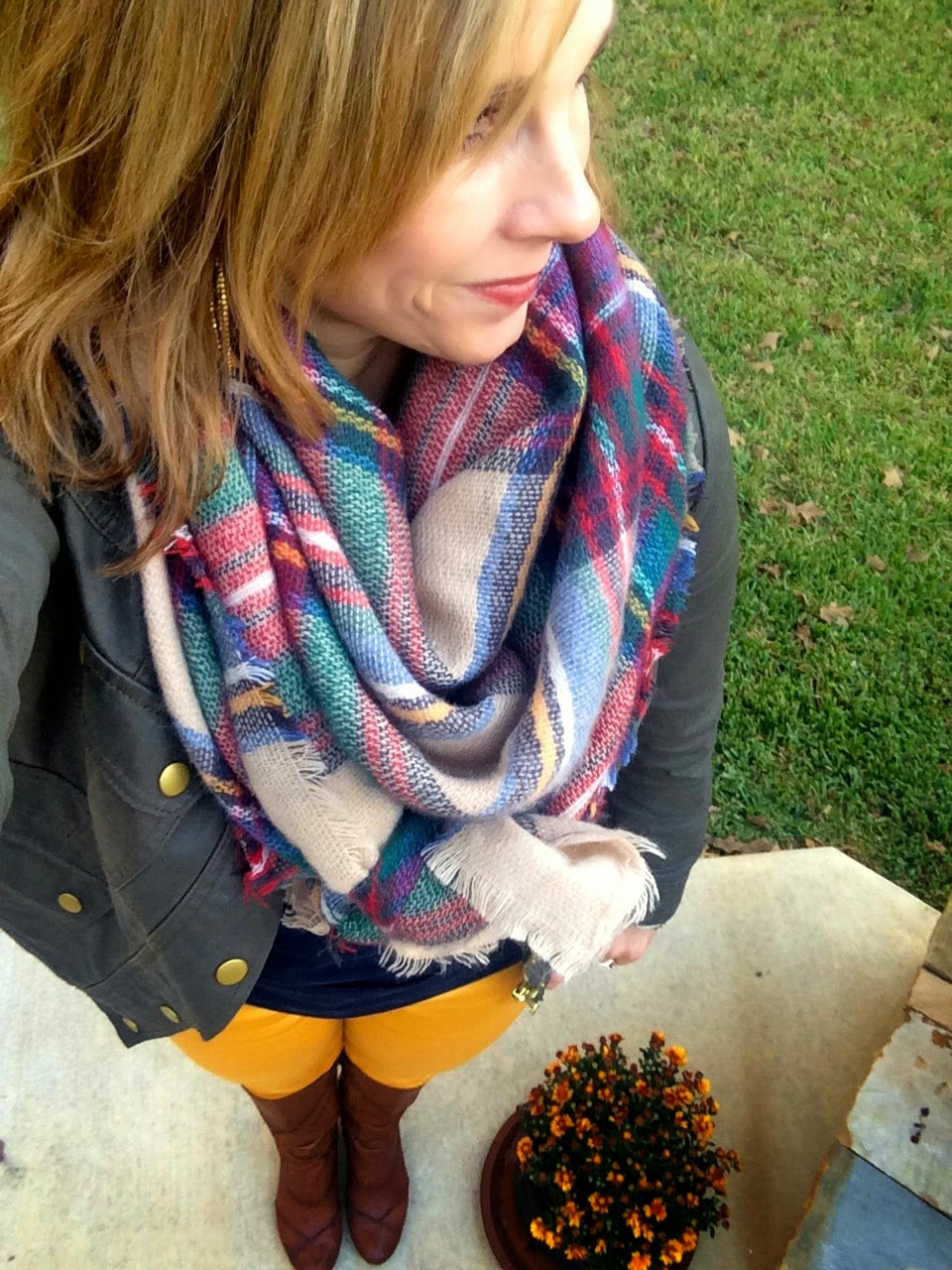 The rain brought cooler weather and I was excited to finally have a chance to wear my Zara blanket scarf. I actually purchased mine through Amazon and had no trouble receiving. This has to be one of my very favorite outfits. The colors scream fall and it was just so cozy and fun. If you have a blanket scarf and are struggling with how to wear it, I found this quick video tutorial that was helpful here.
