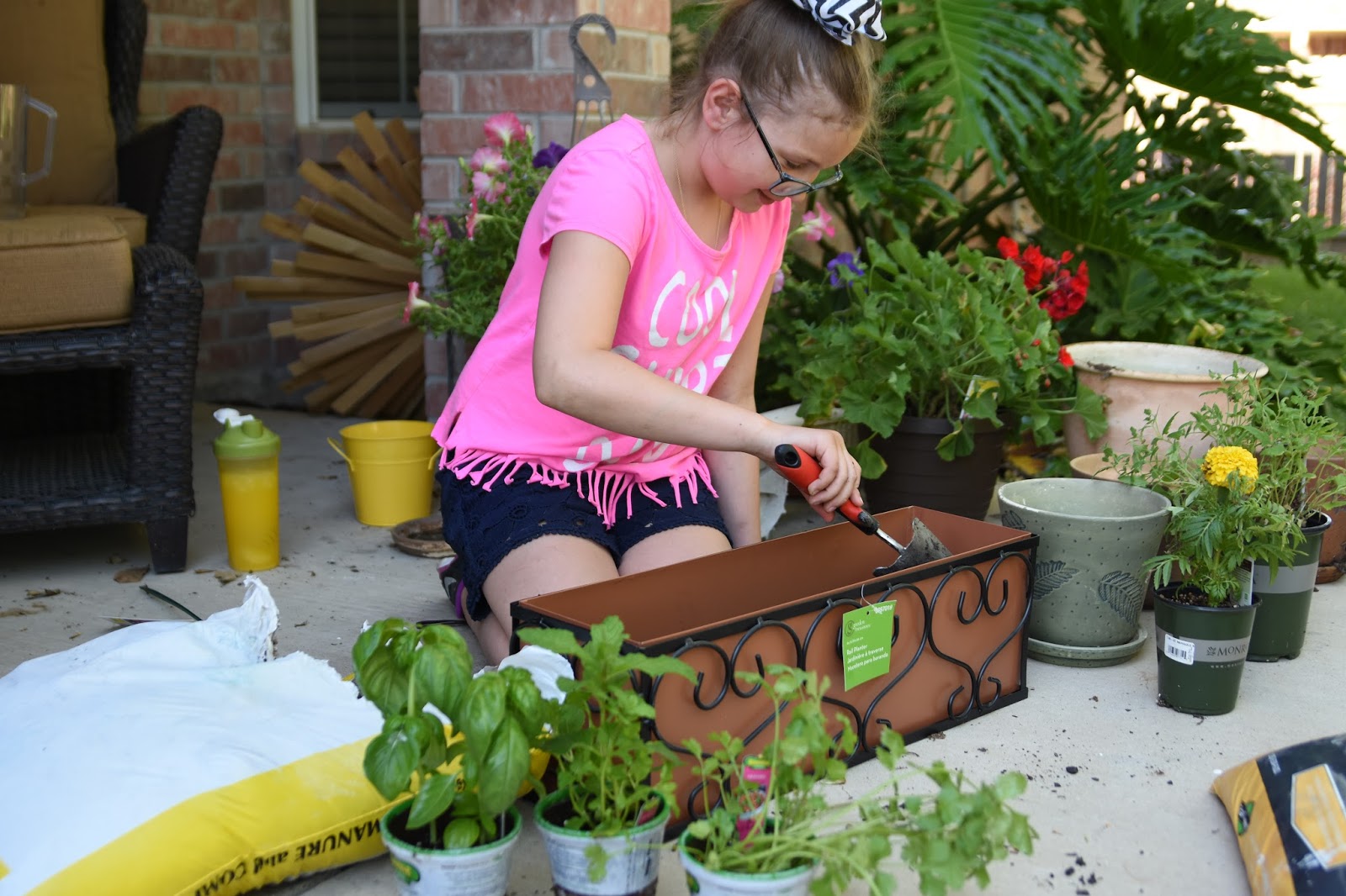 Carly is super excited about the tomato plant and herbs we planted and has been very diligent about watering.