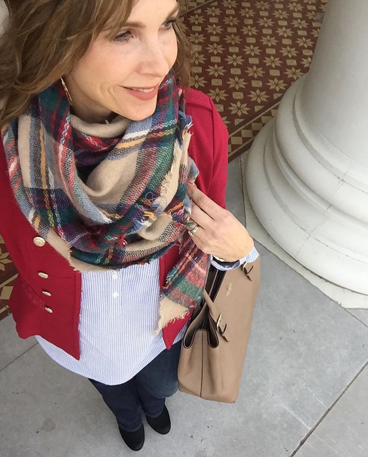 I’ve been obsessed with vertical striped tops like this one or this one and low and behold I actually had one in my closet! Who knew how cute it would be with my red jacket?
