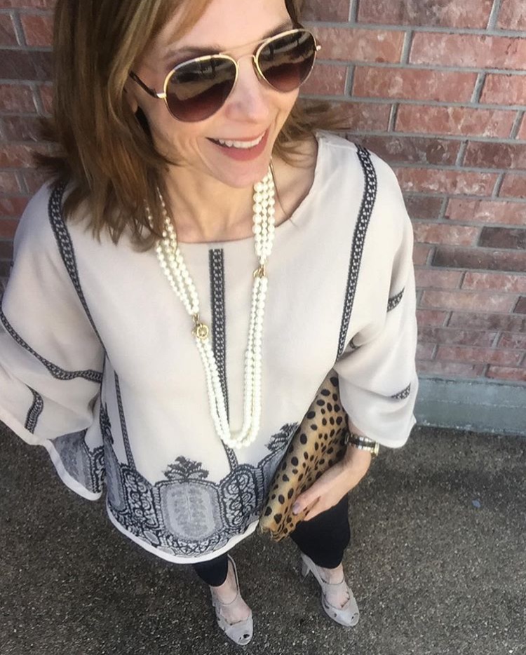 This top..y’all it’s just been hanging around for a long while and I can’t even remember the last time I wore it. Thing is I LOVED wearing it so hopefully I’ll pull it out more often. I was so glad when I saw these pearls on the J. Crew Factory site shown worn unclasped long…it took my mind a minute to accept this could happen but I finally figured it out. One necklace two ways!