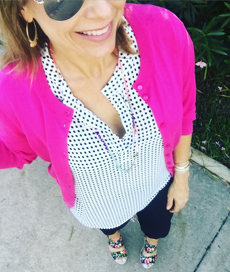 National pink day gave me the chance to pair these two for the first time and why? Isn’t this combo darling? Pleione tops are some of my very favorites. They are light weight, good quality and fit and come in a variety of patterns, colors and styles.