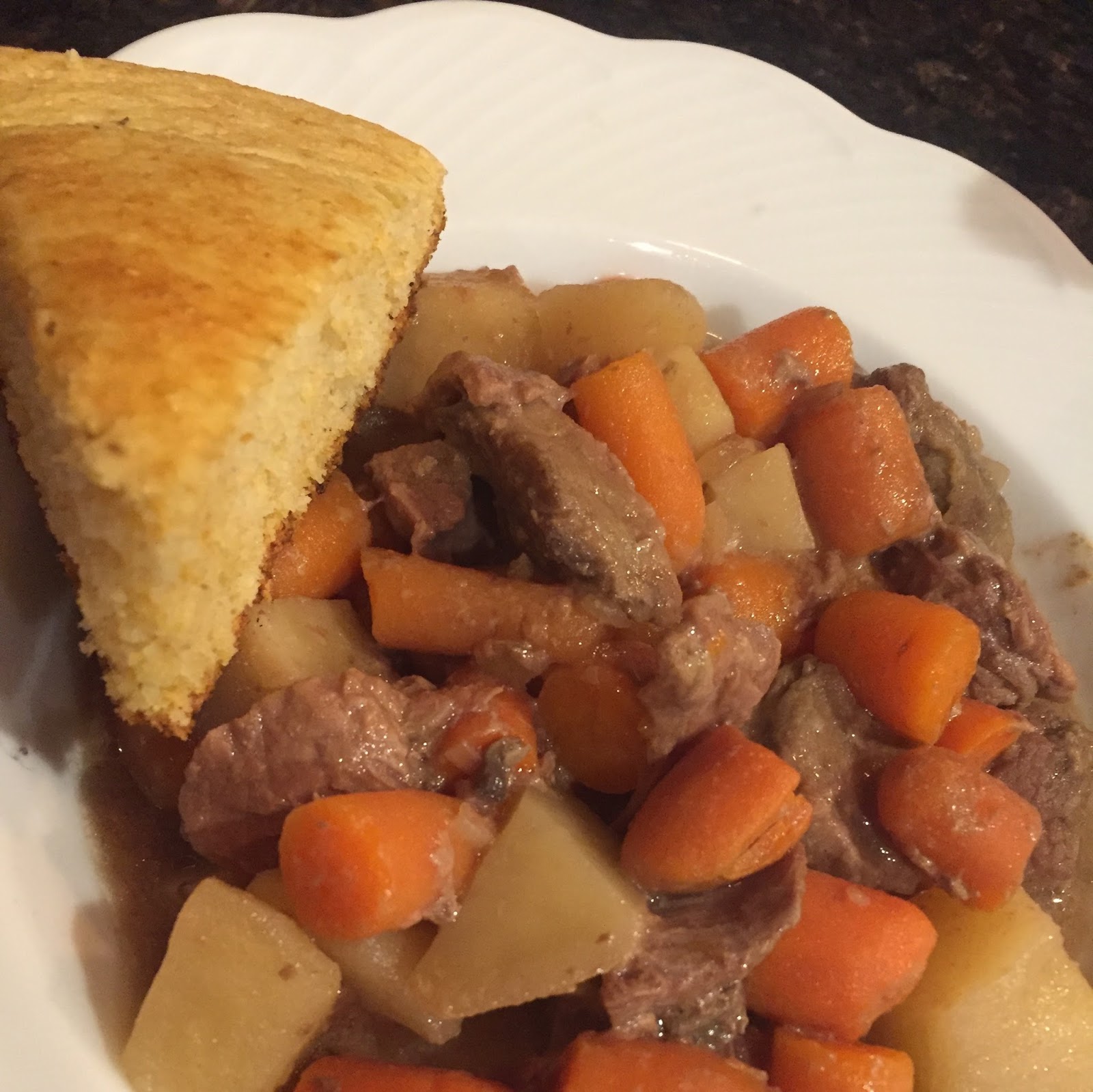 Tuesday night it was beef stew and cornbread which is always a favorite! Only wish it was a little cooler outside.