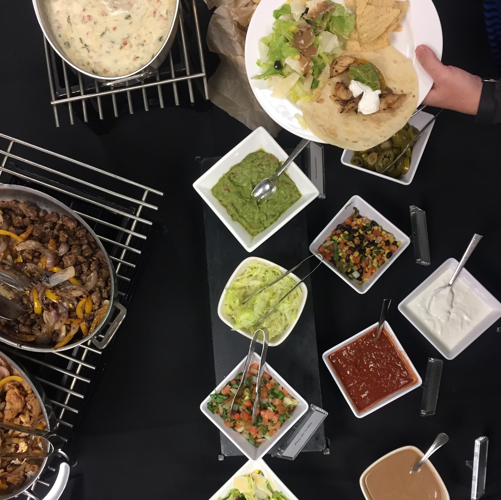 The President’s office on campus had lunch catered for our budget office as a thank you! Fajitas and all the trimmings were set up and I skipped the tortilla but did not pass on that queso! So yummy.